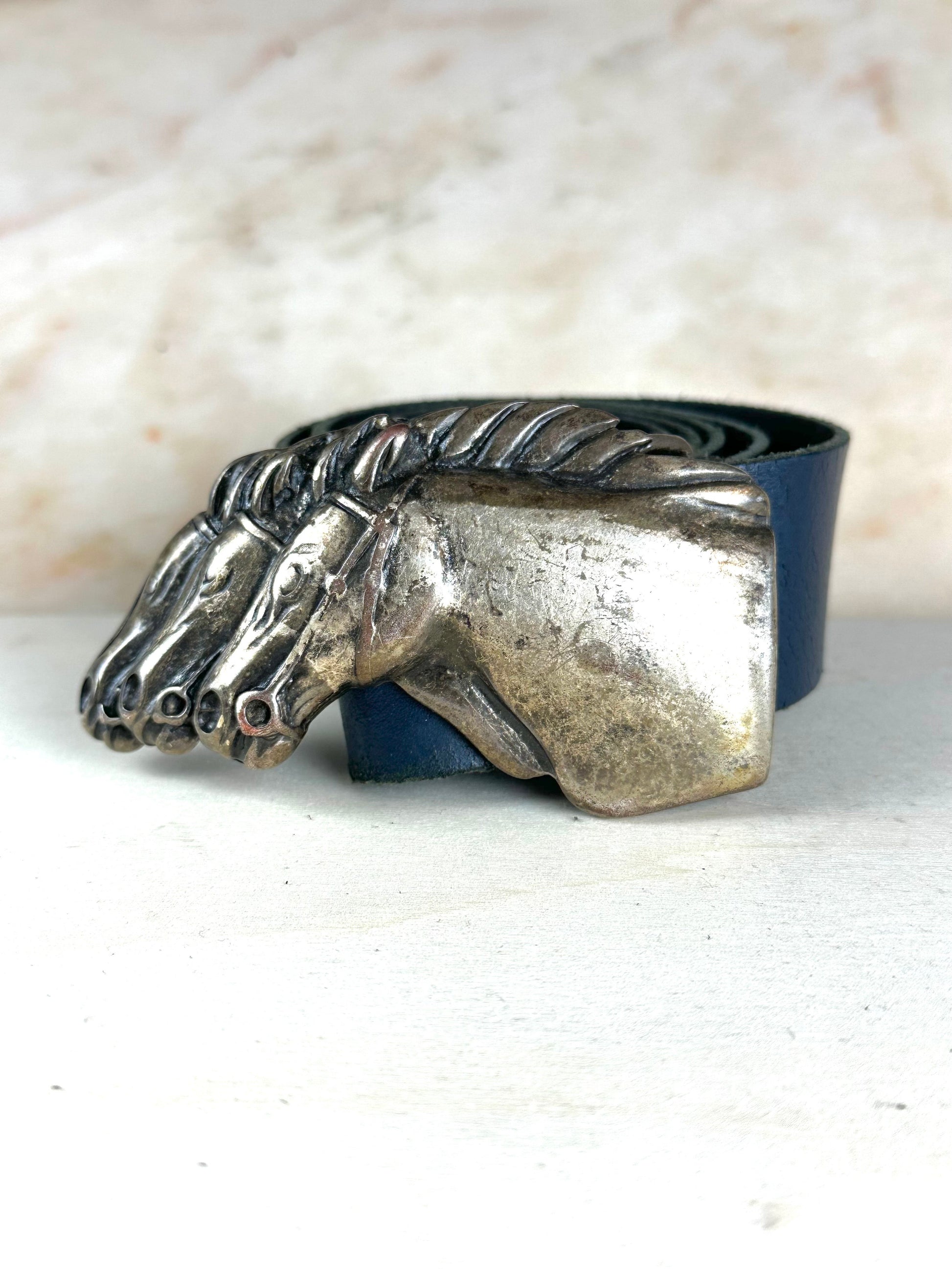 Cintura in vera pelle fibbia metallo con cavalli
