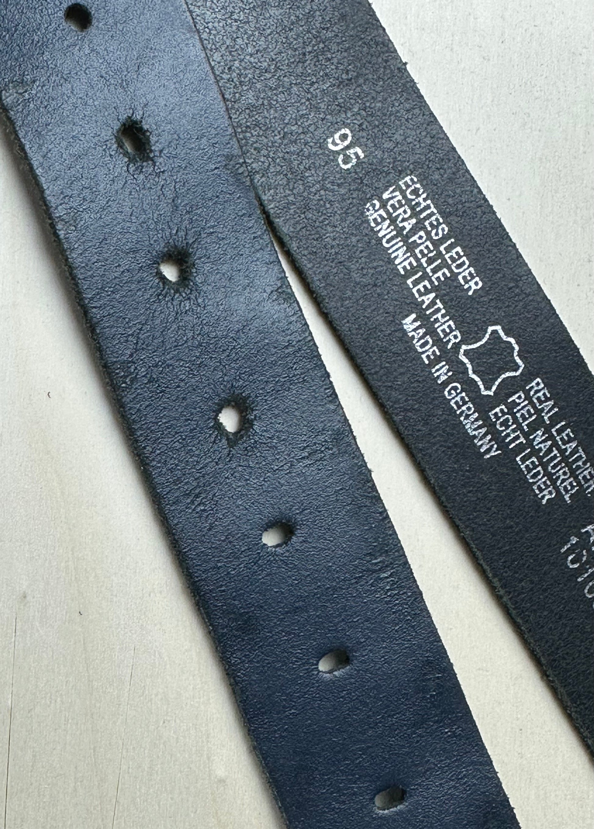 Cintura in vera pelle fibbia metallo con cavalli, colore blu notte, 95cm