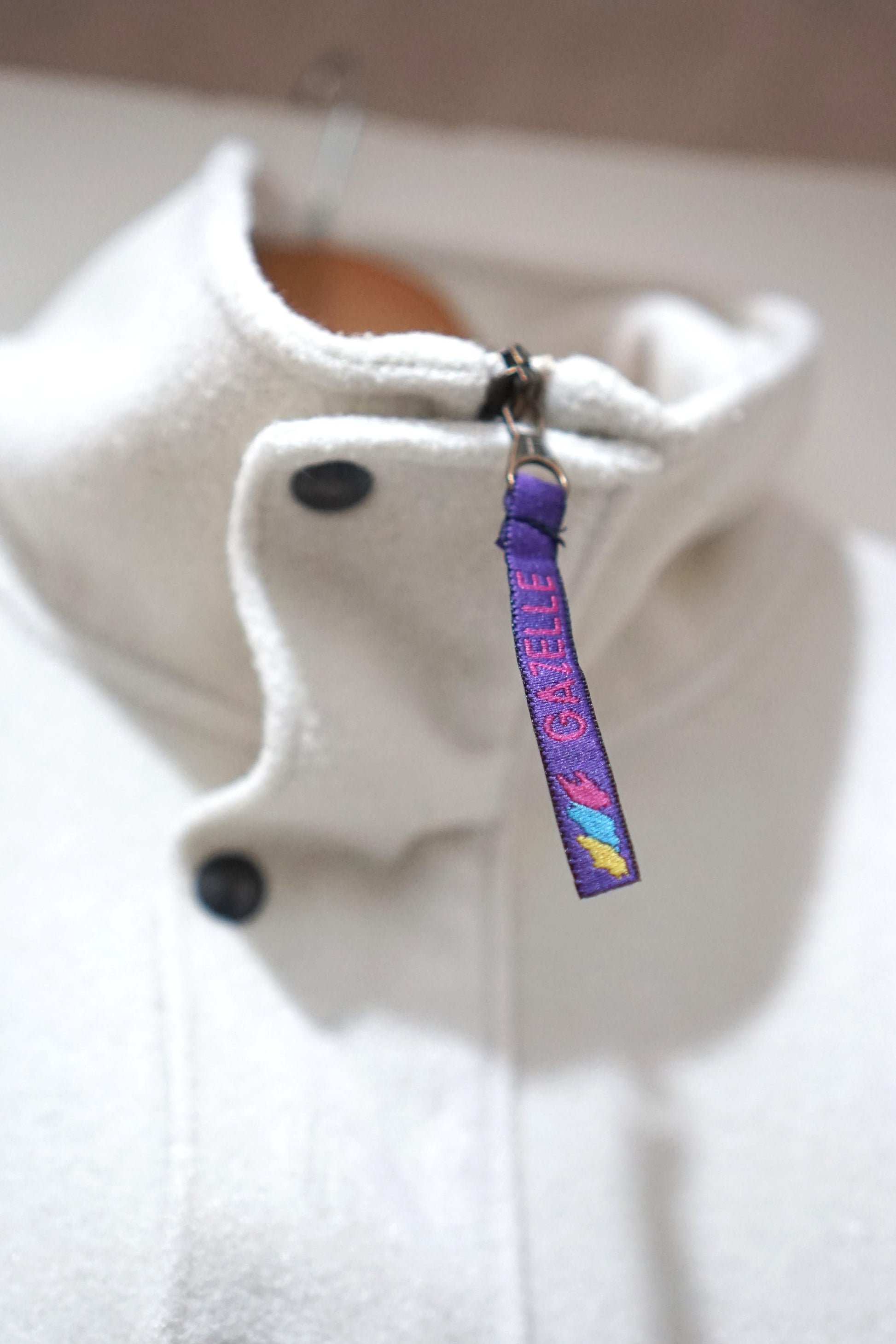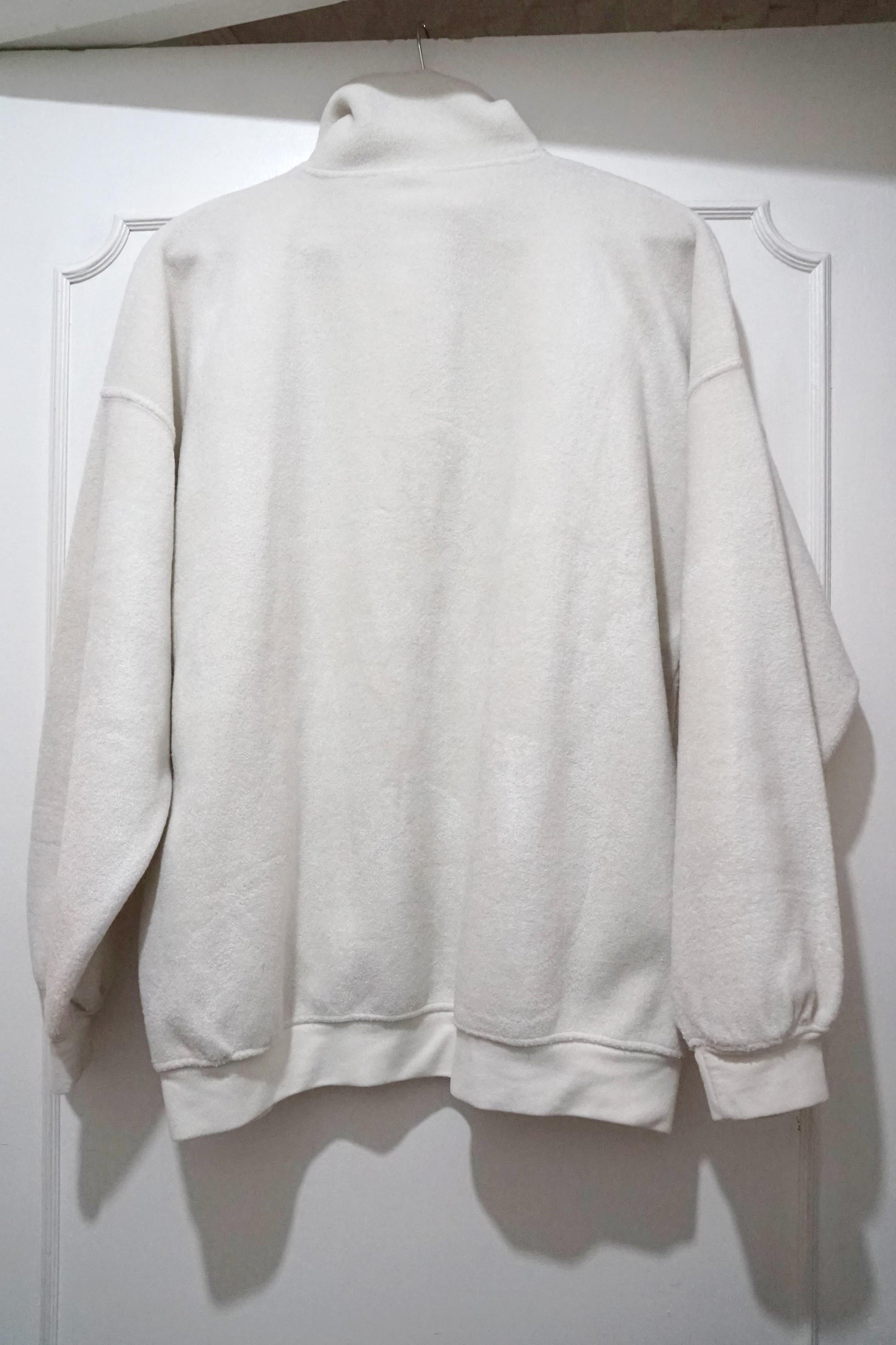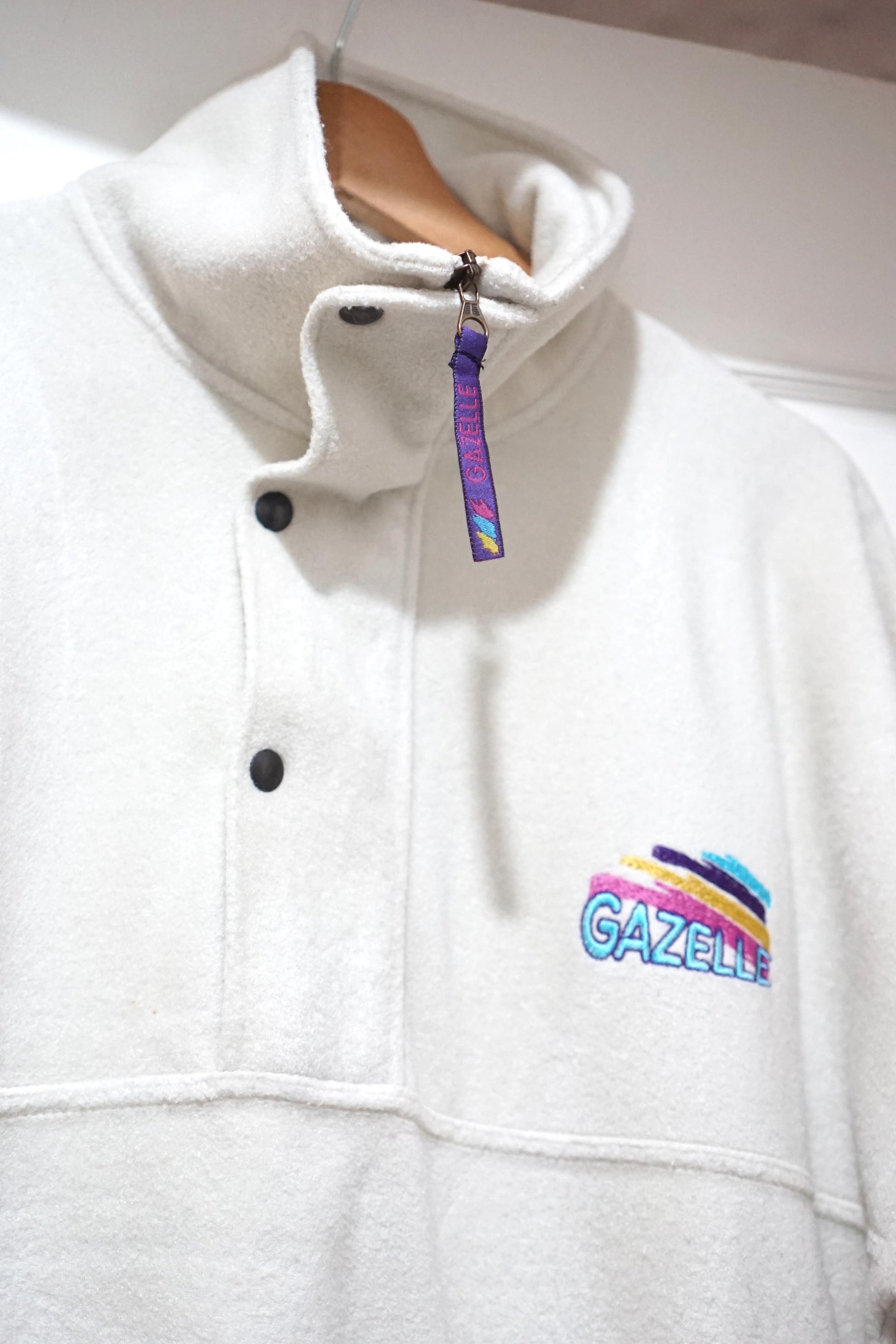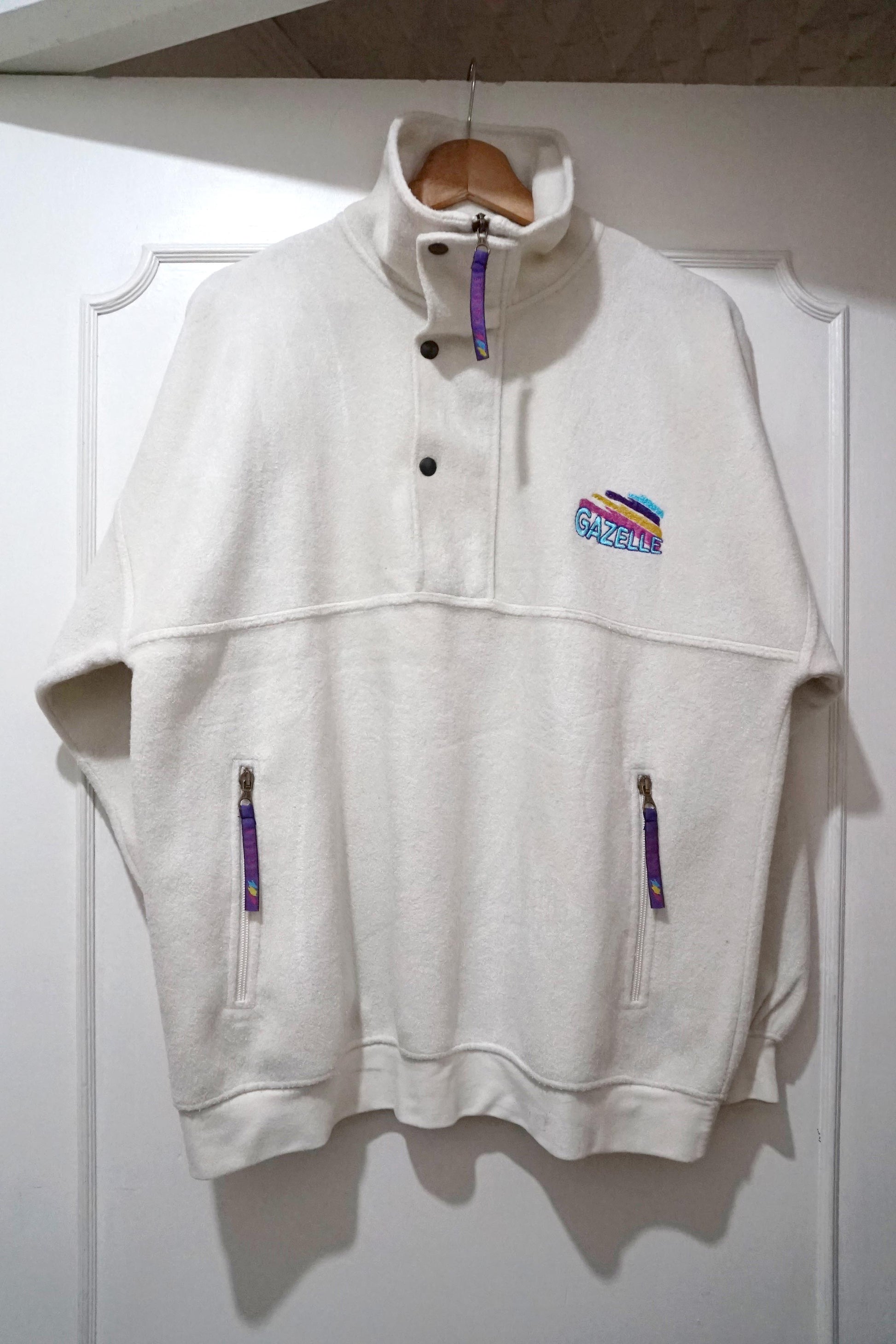 Felpa bianca Gazzelle, manica lunga, due tasche, zip di chiusura. Taglia M